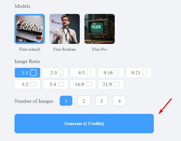 - You are immediately given 30 free credits (sufficient to test the main features)